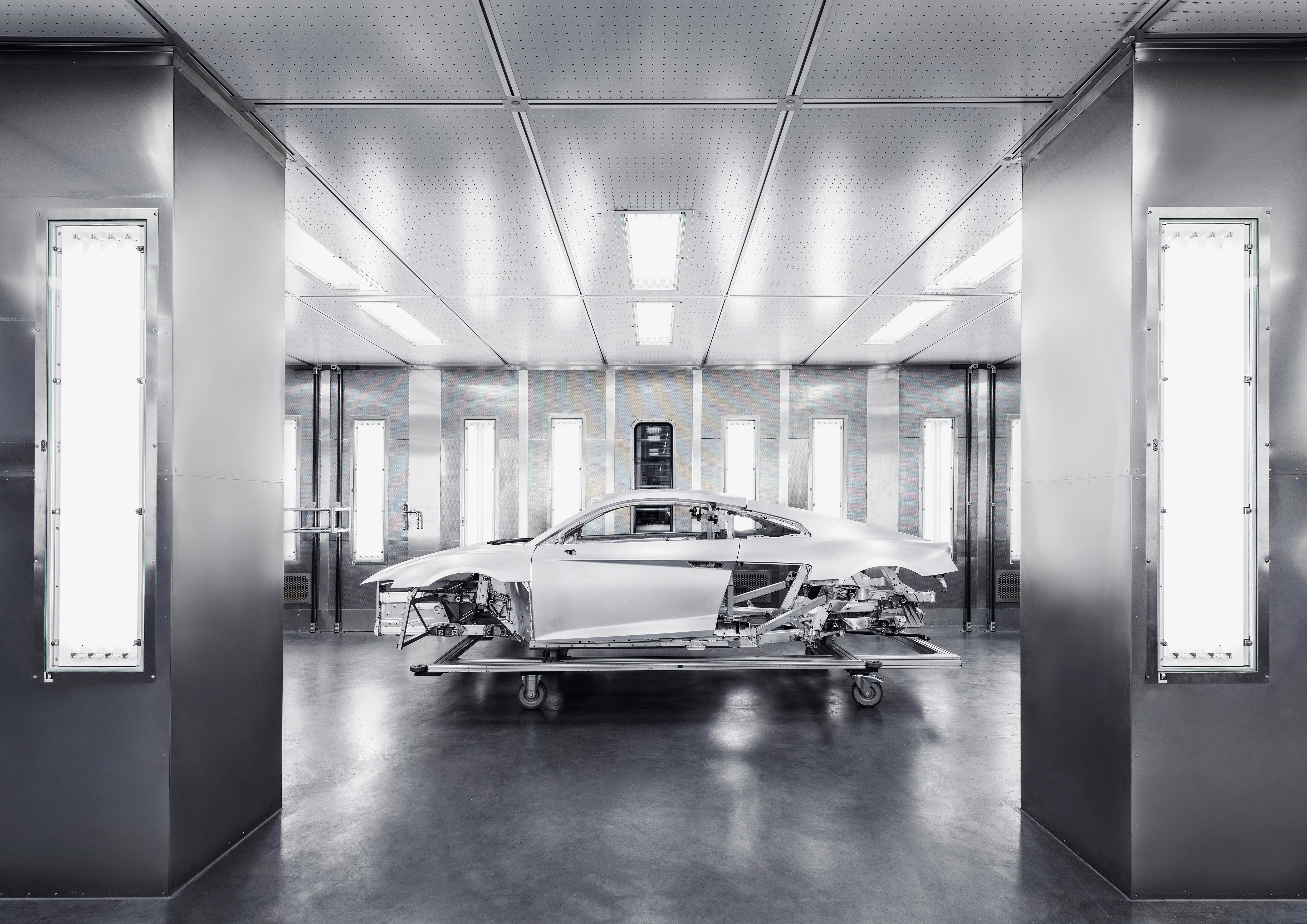 Rund 5.000 Arbeitsschritte – viele davon in Handarbeit – sorgen für höchste Präzision. Der Aufbau beginnt mit dem Aluminium-Space-Frame, dessen Schweißnähte und Verbindungen laserbasiert geprüft werden. In der Montage werden Fahrwerk, Motor, Elektronik und Interieur in klar strukturierten Abläufen zusammengeführt.